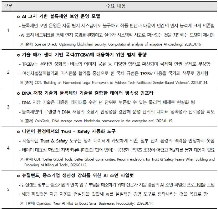 ▶ 글로벌 블록체인 기술·정책·산업 동향분석 결과(2026년 1월 3주차)