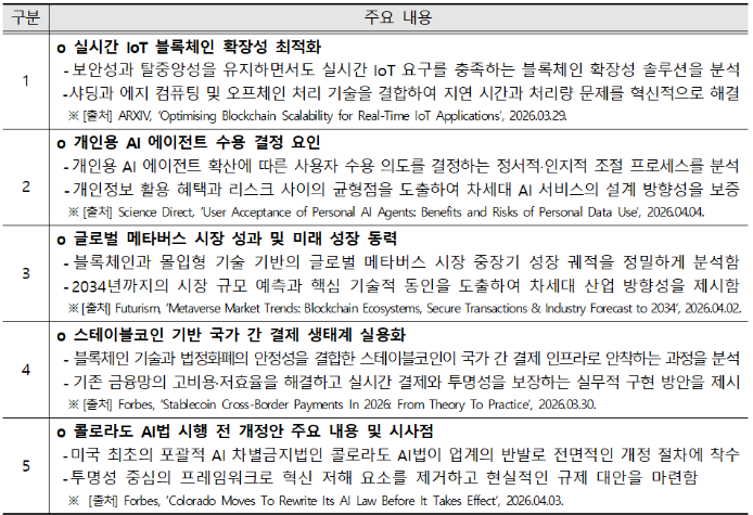 ▶ 글로벌 블록체인 기술·정책·산업 동향분석 결과(2026년 4월 1