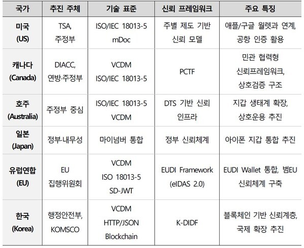 글로벌 디지털 신원 체계가 본격 상용화되는 현재, 국제 상호인정(Inter-Recognition) 체계 구축은 디지털 운전면허증의 실질적 활용성을 결정짓는 핵심 요소로 부상했다. EU의 EUDI Wallet, 캐나다의 PCTF, 한국의 K-DIDF는 공통적으로 신뢰 기반 디지털 신원 프레임워크를 중심으로 법적·기술적 호환성을 확보 중이다.