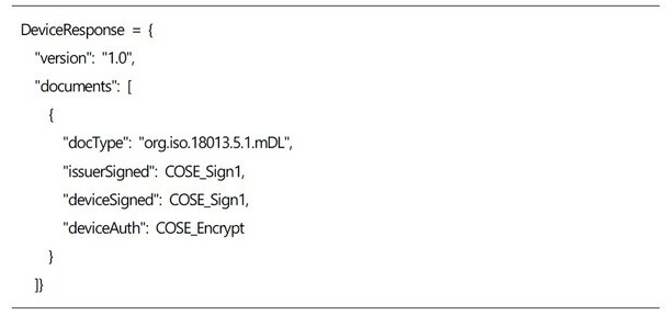ISO/IEC mDoc은 모바일 운전면허증(mDL) 등 공식 신원증명서의 디지털 구현을 위한 국제 표준 모델이다. 중앙 및 공공기관 중심의 중앙집중형 신뢰 루트(Centralized Trust Root)를 기반으로 보안성과 법적 신뢰성 확보에 초점을 맞추며, CBOR(Concise Binary Object Representation) 및 COSE 형식의 이진 구조로 인코딩되어 각 데이터 요소는 전자서명을 통해 위변조가 방지된다. ISO/IEC 18013-5에서 정의한 BLE, NFC, HTTP 기반 전송 프로토콜과 결합하여 오프라인 검증 환경을 구현한다.