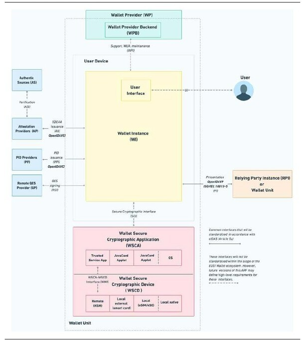 2024년 5월 eIDAS 2.0(규정 (EU) 2024/1183) 발효로 유럽 시민은 단일 디지털 신원 지갑(EUDI Wallet)을 통해 모든 공공·민간 서비스에서 본인을 증명할 수 있게 되었다. EUDI의 신뢰 기반 운영을 위해 보안, 프라이버시, 상호운용성 규칙을 명문화한 EUDI ARF(Architecture and Reference Framework)가 지속적으로 개발 중이다. EUDI ARF는 EU가 전체 방향을 설계하고 회원국이 실행하며 기술단체가 세부 표준을 구체화하는 구조로 운영된다. 특히 mDoc, VCDM, SD-JWT 등 다양한 데이터 모델과 ISO 18013-5, OID4VP, REST API 등 프로토콜을 포함한 확장 가능한 EUDI Wallet 구조가 제시되었으며, 모바일 운전면허증(mDL)은 전자속성증명(EAA)의 한 형태로 ISO/IEC 18013-5 및 18013-7 규격 기반으로 지원된다.