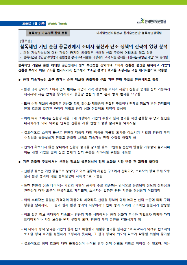 [기술산업동향] KISA_26년 1월 1주차 글로벌 블록체인 동향분석