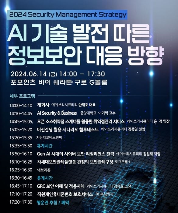 오는 6월 14일 서울 구로구 포포인츠 바이 쉐라톤 구로 G볼룸에서 개최되는 보안관리 전략 세미나,