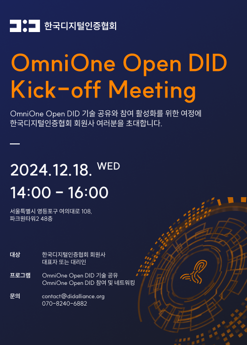 OmniOne Open DID Kick-off Meeting 일정 안내드리며, 많은 관심과 참여 부탁드립니다.